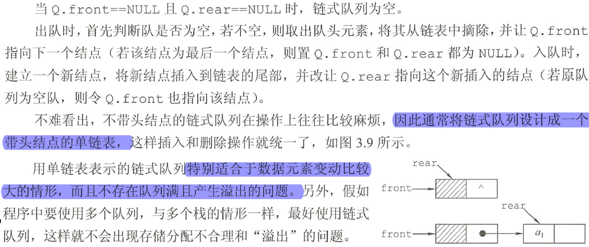 {q.front = q.rear = new linkNode; //建立头结点q.front->next = NULL; //初始为空