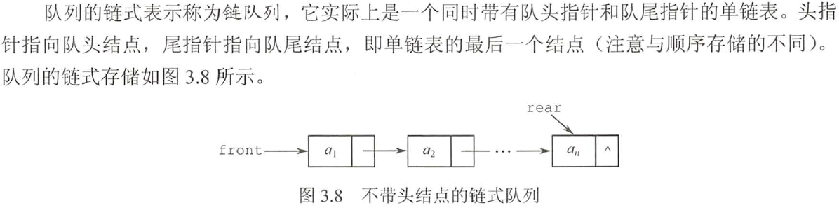 {linkNode *s = new linkNode; //创建一个新的数据节点s->data = x; //插入到链尾s->next = NULL;q.rear->next = s; //移动队尾指针;q.rear = s;
