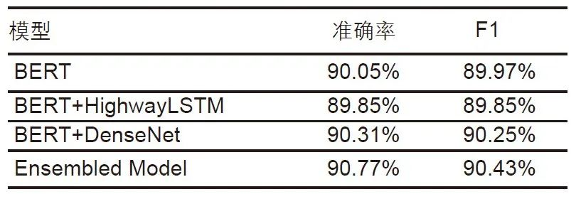 实验结果如表3中所示,可以看出,虽然模型集成后的效果并不十分明显,但也有一定的效果提升。