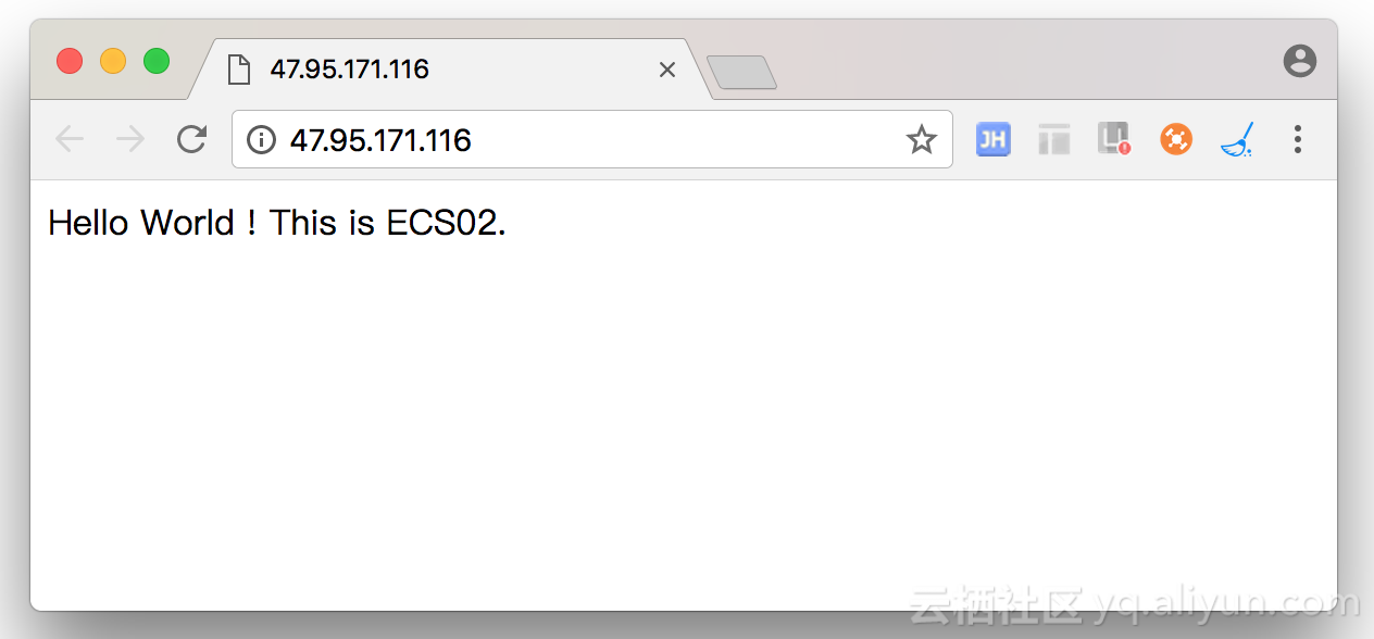 不断刷新网页,可以看到一会页面返回的是“Hello World ! This is ECS01.”,一会返回的是“Hello World ! This is ECS02.”,这就说明负载均衡已经在正常工作了,来自用户的请求,被轮询的发往另外不同的ECS进行处理,并且返回了不同的结果。