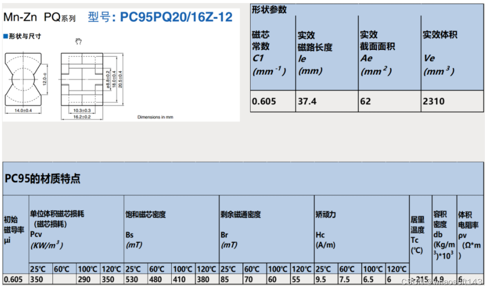 此方法适用于利用磁芯来设计电感的场景。磁芯参数包括磁路长度le,有效面积Ae等。磁芯的型号还决定了相应的磁材牌号,磁材对磁芯损耗,饱和磁通密度等做了相应规定。