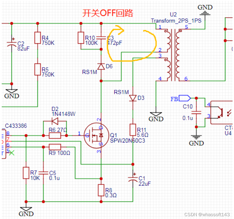 开关电源ON的通路,其中R8为工作电流检测电阻。