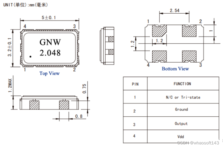 石英晶体振荡器通常用法:一脚悬空,二脚接地,三脚接输出,四脚接电压。