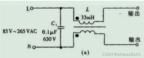 所谓的 EMI 就是电磁干扰,通常采用共模滤波器,其中包括共模电容,不平衡变压器或者共模电感。共模电容将两个输入线的共摸电流旁路到大地,共摸电感呈现一个平衡阻抗,也就是说,电源线和地线中阻抗相等,这个阻抗对共模噪声呈现阻抗特性。