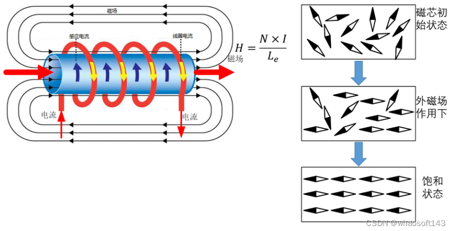 磁芯在磁场的作用下会被磁化,其内部磁畴会慢慢旋转;