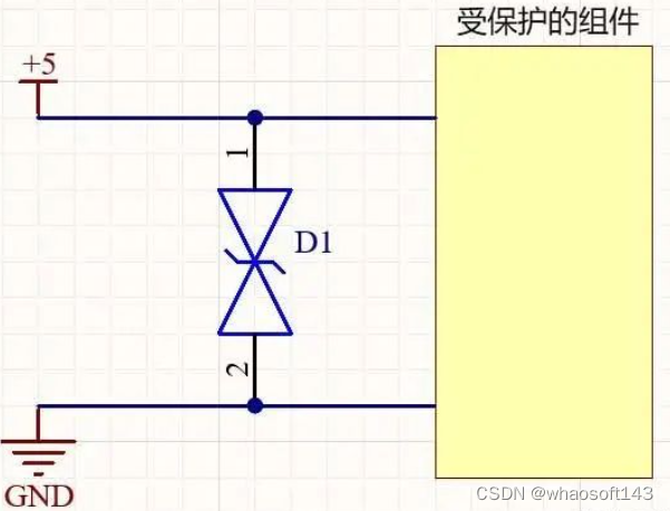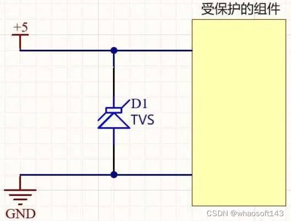 下图为受保护组件电源轨上的单向 TVS 抑制二极管。