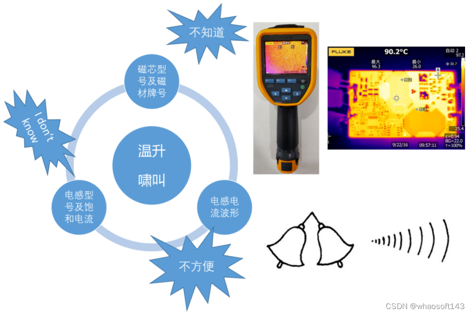 在工程实际中还有很多情况,我们可能不能准确知道磁芯型号,也很难知道电感饱和电流大小,有时候也不能方便的测试电感电流;这时候我们还可以通过测量电感是否有异常温升,或者听是否有异常啸叫等手段来初步判断是否发生了饱和。