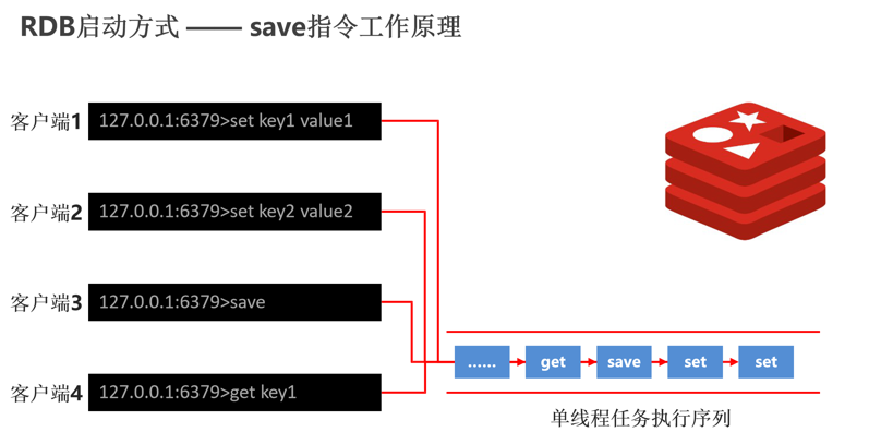 答案是不会,所以说他才是主流方案。子进程开始执行之后,它就会创建啊RDB文件把它存起来,操作完以后他会把这个结果返回,也就是说bgsave的过程分成两个过程,第一个是服务端拿到指令直接告诉客户端开始执行了;另外一个过程是一个子进程在完成后台的保存操作,操作完以后回一个消息。