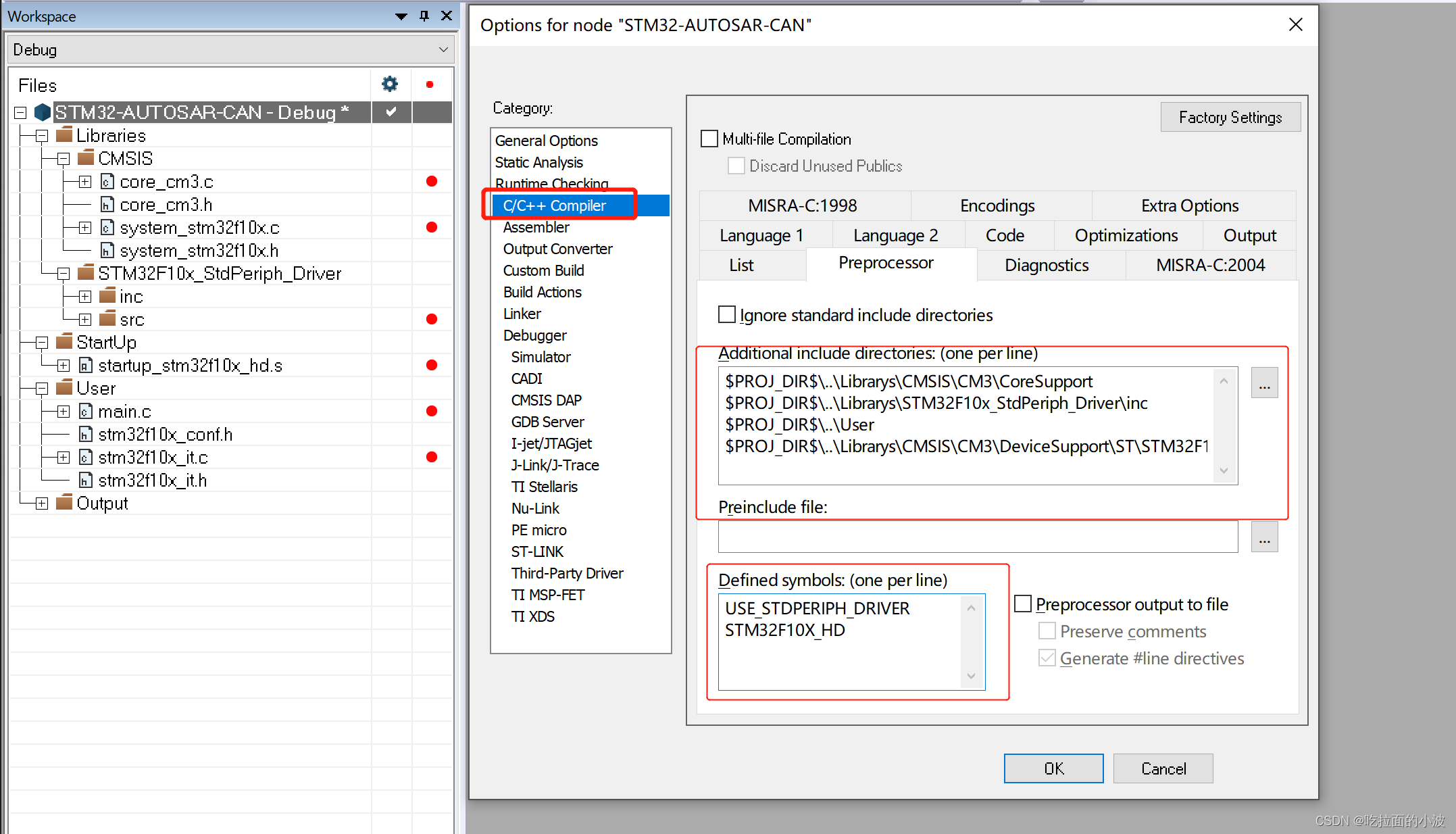 【Project】->【Options】->【C/C++Compiler】->【Preprocessor】