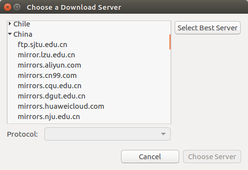 可將 http://cn.archive.ubuntu.com/ubuntu/ 替換為下列任意服務器: