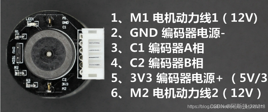 我用的电机是GM25-370直流减速电机(带霍尔编码器),其对应编码器引脚图如下: