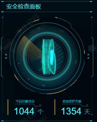 以雷达扫描模拟系统运作,显示拦截攻击次数和安全防护天数,让运维人员对系统运行情况有清晰的认知。