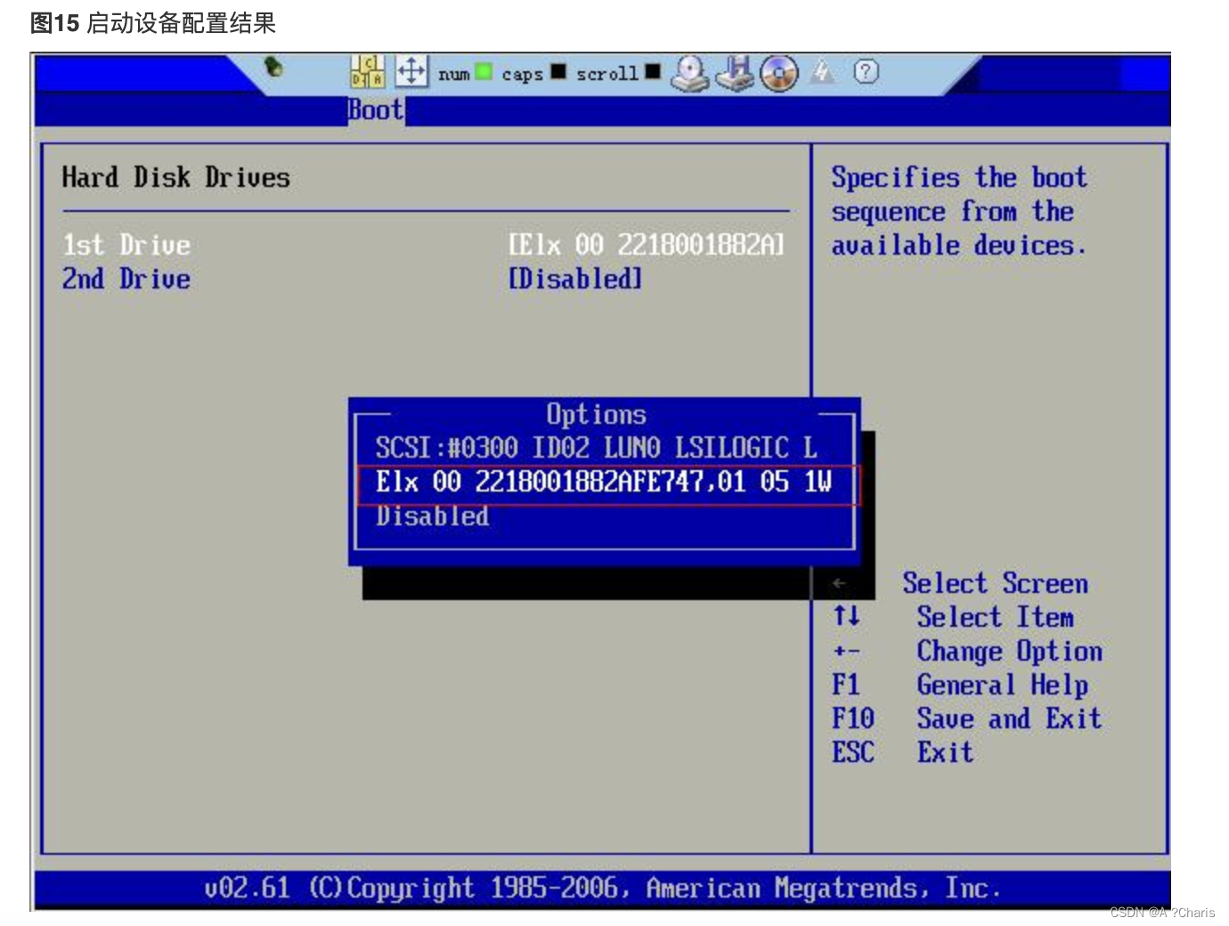 - 按“Enter”键后,选中的LUN被作为第一启动设备,如图5所示。此时可以将操作系统拷贝到该LUN映射成的硬盘上进行安装。