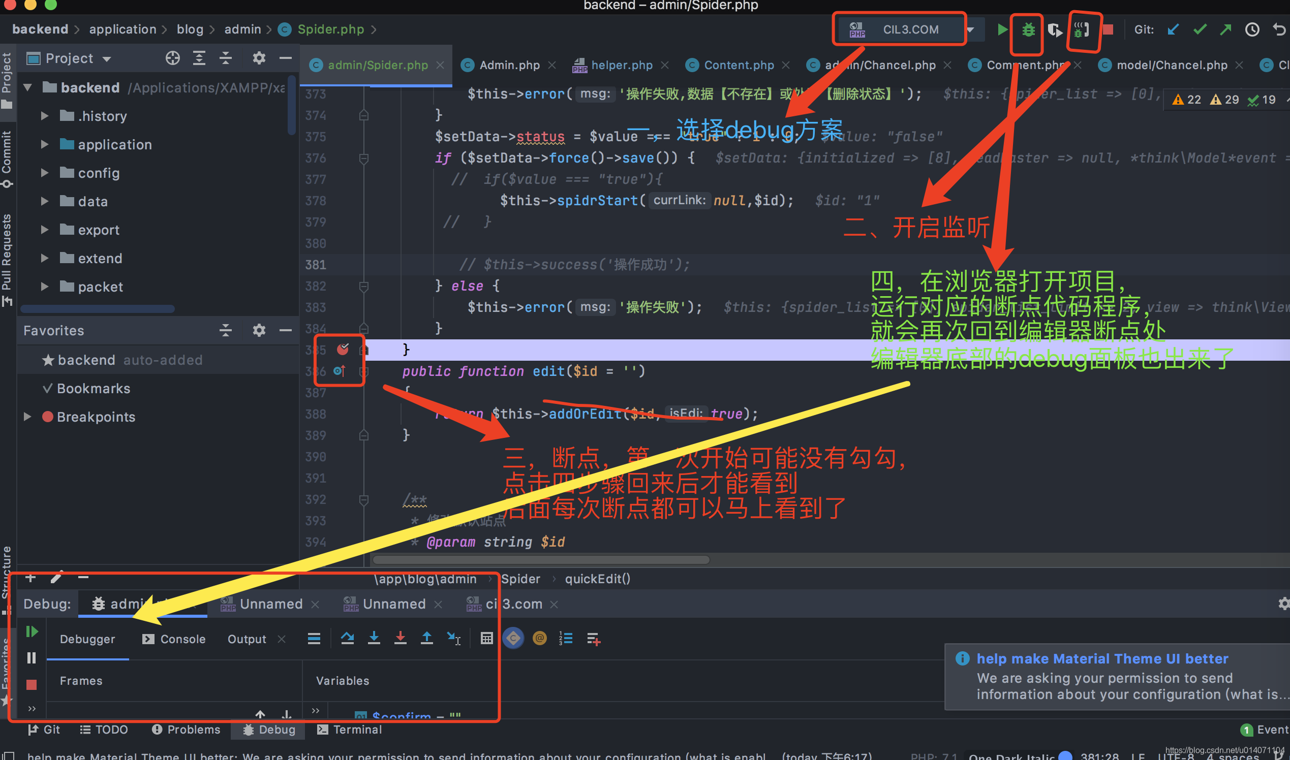 - phpstorm编辑器断点调试需要给本地环境安装xdebug依赖