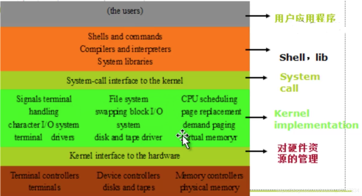 (2)系统调度:操作系统为用户态进程与硬件交互提供了一组接口,通过软中断向内核发起请求,可把用户从底层的硬件编程中解放出来,极大的提高了系统的安全性(防止系统崩溃),使用户程序具有可移植性(与硬件解耦)