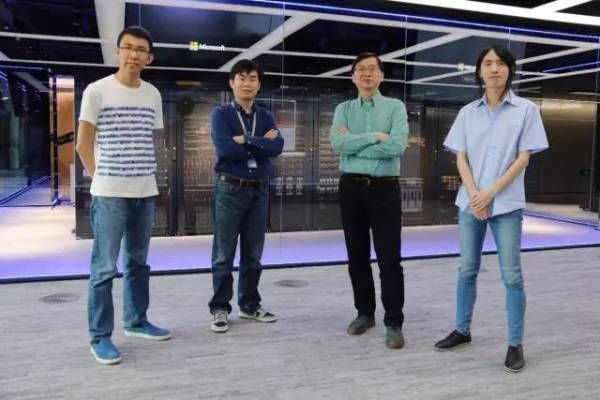 微软亚洲研究院机器阅读团队成员(从左至右:崔磊、韦福如、周明、杨南)