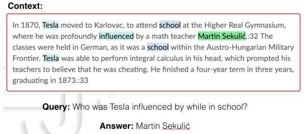 而且,跟CNN/DM,CBT等自然语言处理类数据集相比,过往的数据集往往只是“完形填空”的形式,即要求 AI 将一个词语填写到文章空白处。而 SQuAD 则是真正的阅读理解:需要 AI 先读完一段文章,然后回答一个根据文章提出的问题。