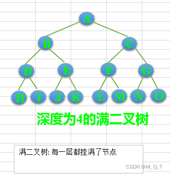 (2)满二叉树——除了叶结点外每一个结点都有左右子叶且叶子结点都处在最底层的二叉树。