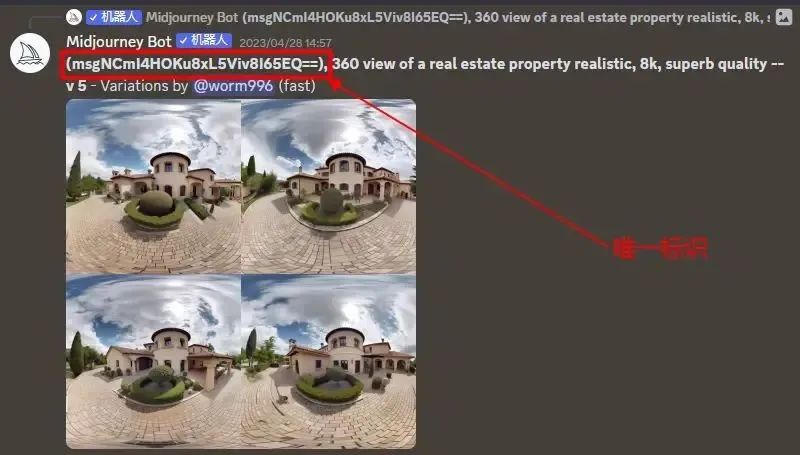为了能够确认每个员工对应的绘制结果,我们需要在同一时间段内多名员工使用Midjourney进行绘画时,提前为每个prompt添加一个消息的唯一标识。在轮询结果时,我们可以基于这个唯一标识来定位返回对象。这个唯一标识最好是一个Midjourney无法解释的内容,因为如果该标识被Midjourney识别为提示内容,就有可能影响结果并导致偏差。这样,我们就可以更加准确地获取到每个员工的绘制结果。