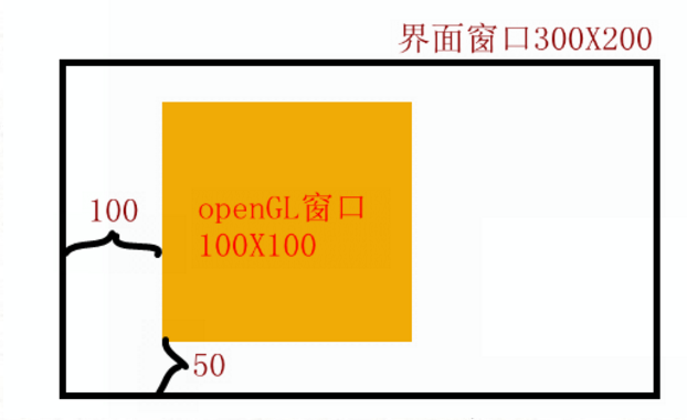 如果设置全屏,一般都是 glViewport(0, 0, width(), height()),比如设置为glViewport(100, 50, 100,100)时,那么对应300x200窗口,是这样的: