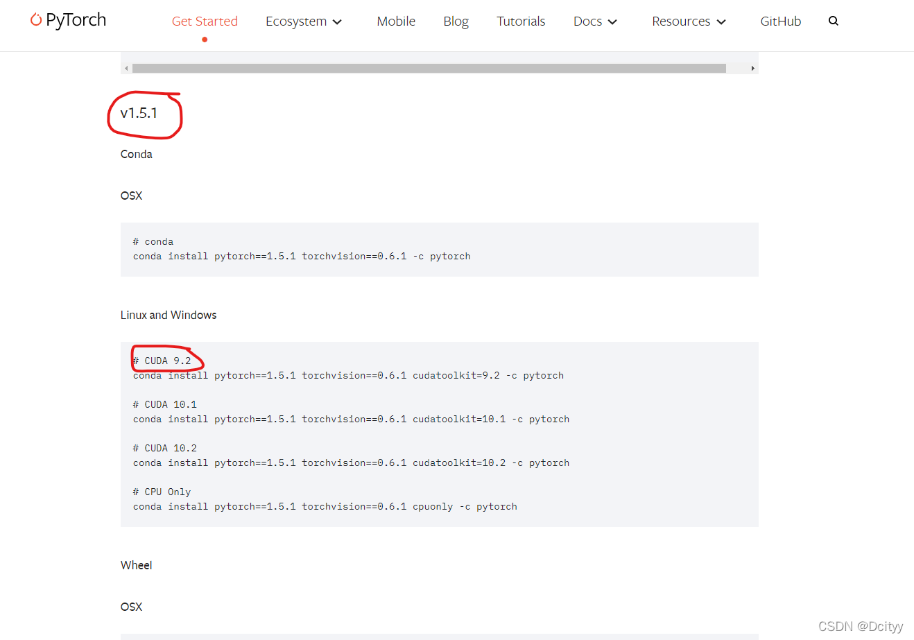 在这里我根据版本对应的关系挑选了v1.5.1,并且cudatoolkit=9.2(小于10.1)的版本