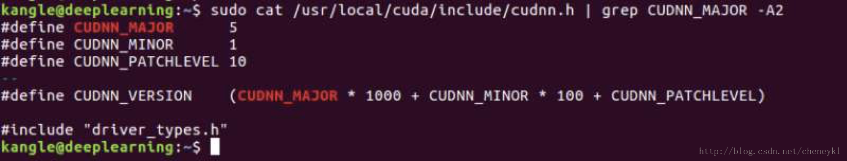sudo cat /usr/local/cuda/include/cudnn.h | grep CUDNN_MAJOR -A2