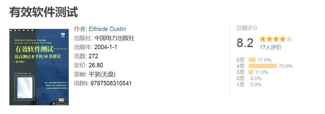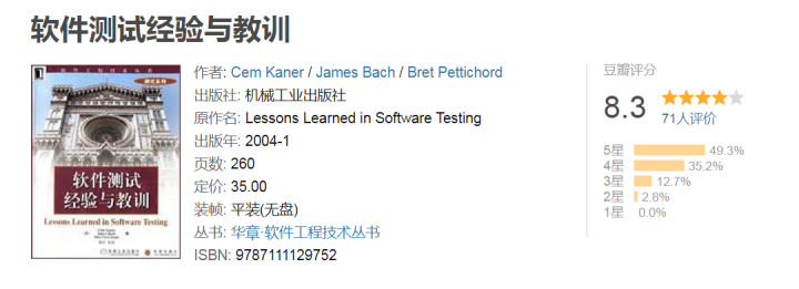 这本书可以用来作为进入行业的第一本书,本书讲解的都是实用的技术,通过阅读本书可以快速的去学会如何测试软件。个人建议,这本书至少要读3遍以上。