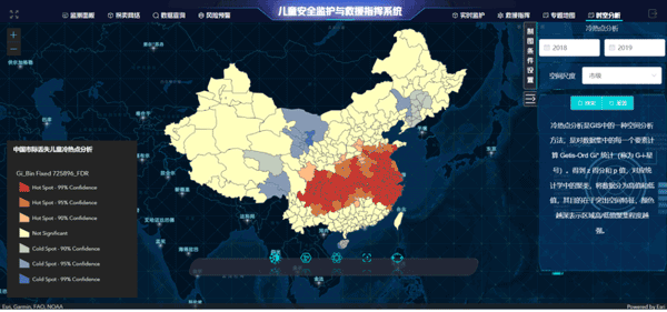平台通过数理统计分析,总结中国各省市被拐儿童人口统计学规律;采用全局空间自相关分析和局部空间聚集分析,探寻我国被拐儿童的全局和局部空间分布模式;结合新兴时空热点分析工具,利用空间网络路径算法对中国拐卖儿童犯罪空间网络以及路径进行分析,探讨各省份趋同过程与省份背景之间存在的内在联系。平台通过研究我国各省市被拐儿童数量的时空特征,定量地描述被拐儿童的时空分异机制和导致变化的影响因素。