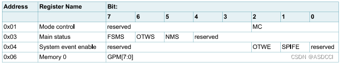 0x04:系统事件使能寄存器,负责使能捕捉过温、SPI故障事件。这个按理来说应该分成事件捕捉一类。