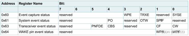 0x61:系统事件状态寄存器:主要包含过温警告事件、SPI故障事件