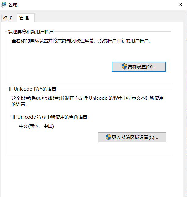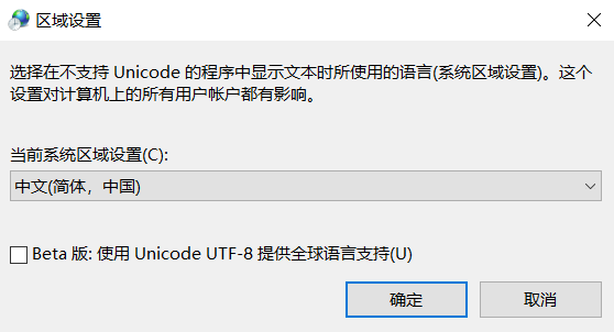 控制面板——时钟和区域——管理——更改系统区域设置——beta版:使用unicode UTF8提供全球语言支持,把打勾去掉就正常了