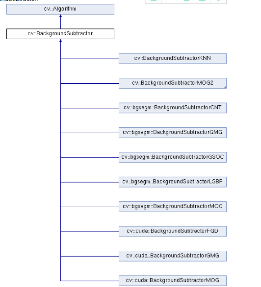 OpenCV用于背景建模的类主要有:BackgroundSubtractor、BackgroundSubtractorMOG、BackgroundSubtractorMOG2、BackgroundSubtractorKNN。BackgroundSubtractor在OpenCV2和3版本有较大区别,OpenCV3取消了OpenCV2.4中的高斯背景建模(BackgroundSubtractorMOG),保留了高斯背景建模2(BackgroundSubtractorMOG2),引入了KNN背景建模(BackgroundSubtractorKNN)。