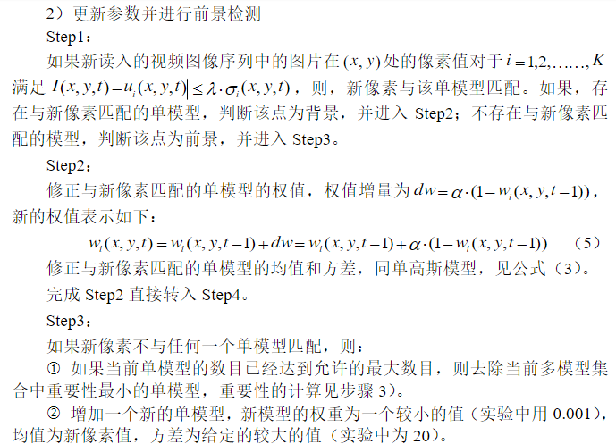 (3)实际场景中背景区域也可能实时改变,所以需要实时更新混合高斯分布参数的策略