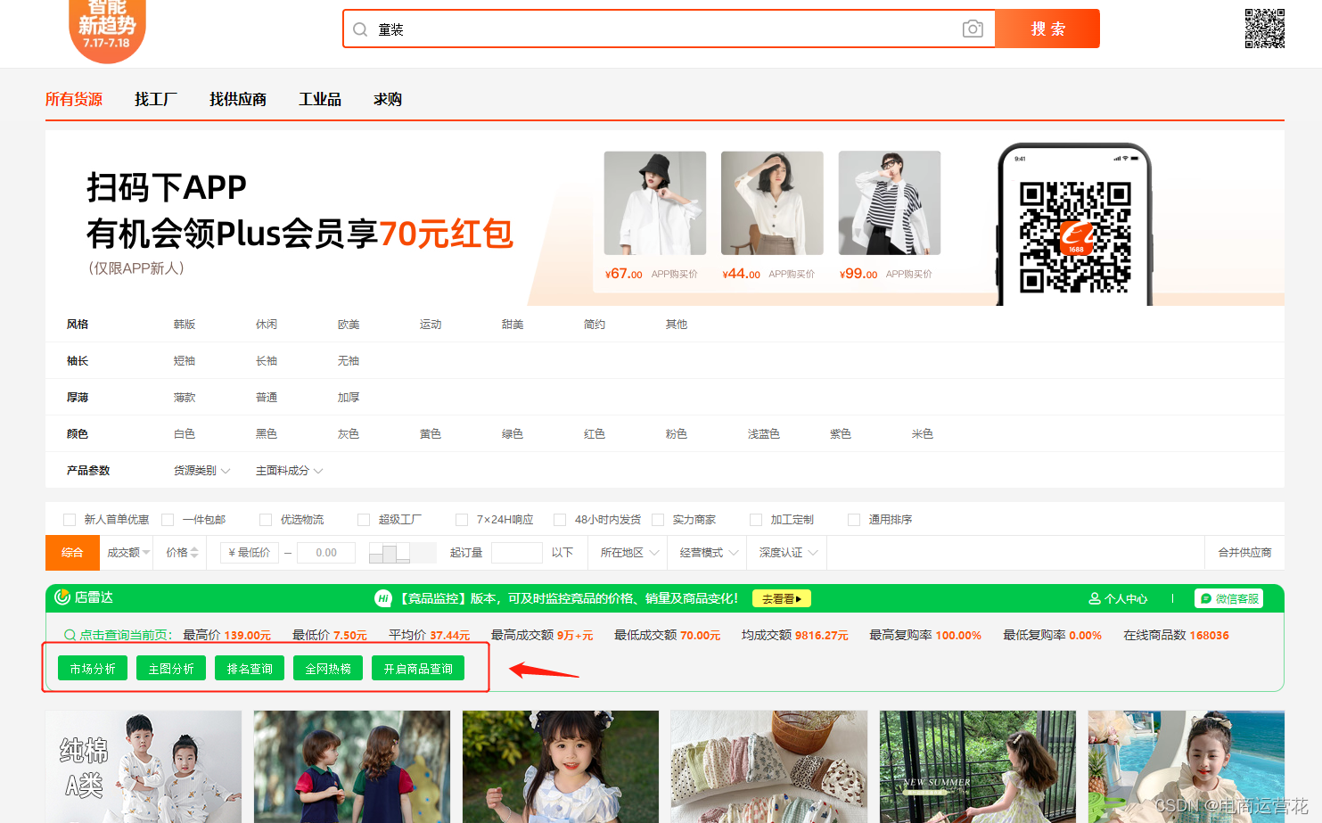 其次,也可以查询具体的市场分析、主图分析、排名查询、全网热榜和商品查询。