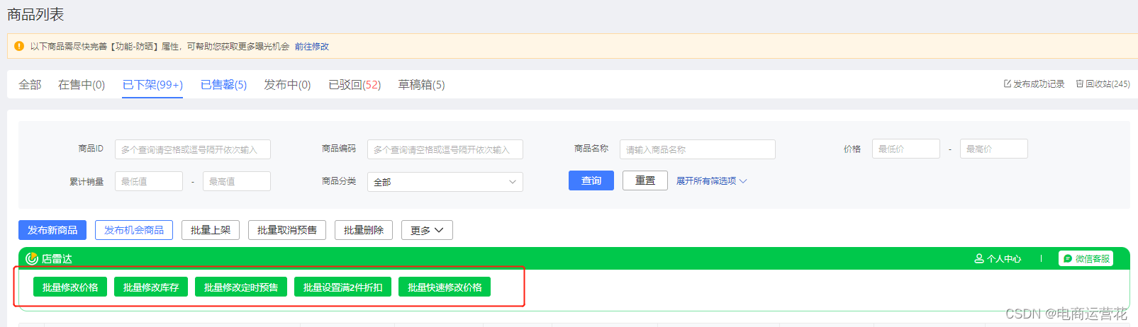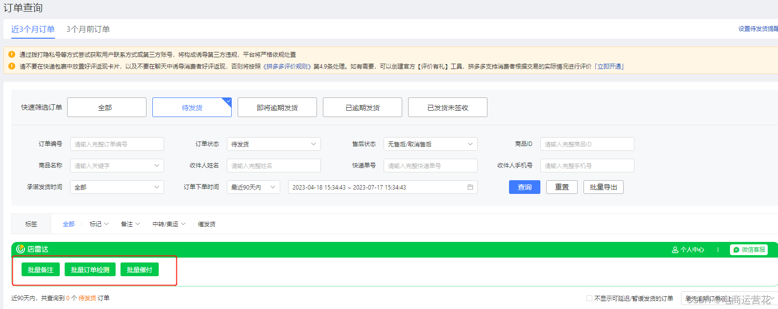 批量家族很庞大:针对【商品列表】有拼多多批量修改价格、拼多多批量修改库存、批量修改定时预售、批量设置满2件折扣、批量快速修改价格。针对【订单查询】有批量备注、批量订单检测及批量催付功能。