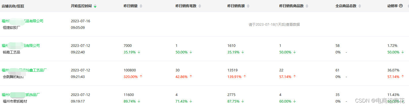 有想要学习或者感兴趣或者想要查看选品的店铺,就可以使用竞品监控功能,可以及时监控同行/竞争对手的价格、销量及商品变化。只要添加竞品店铺,隔天就能看到查看到它的昨日销量、昨日销售笔数、昨日销售商品数、全店商品总数等。