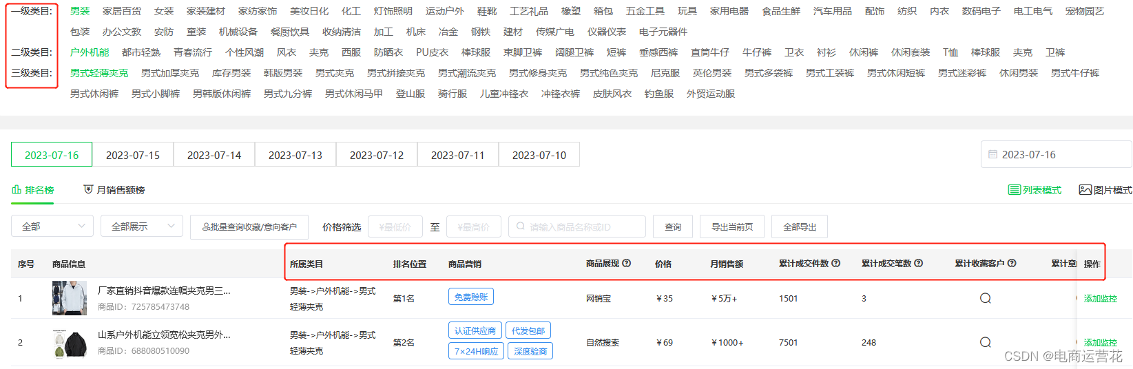 数据可视化:进行市场分析、主图对比;相关服务有找货源、同类榜单以及可以批量查排名和店铺分析。