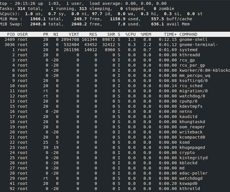 Mem: 1.9Gi 1.2Gi 250Mi 15Mi 527Mi 605Mi