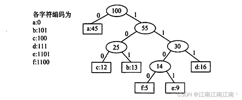 由哈夫曼树构造哈夫曼编码,0向左子树,1向右子树(01指向左还是右没有明确规定)
