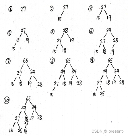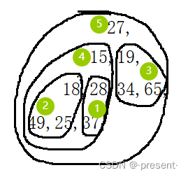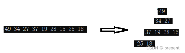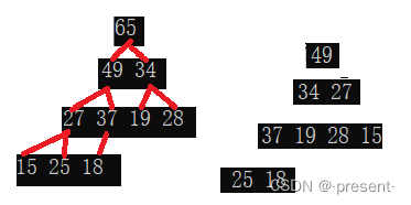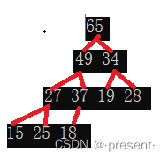 假设给了我们这样一个数组array(27,15,19,18,34,65,49,25,37)