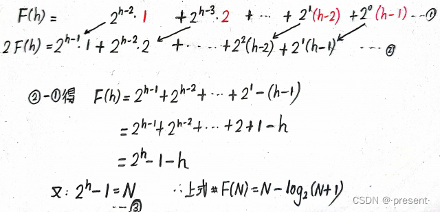 利用错位相减进行化简,再根据树高和结点个数的关系(式3)