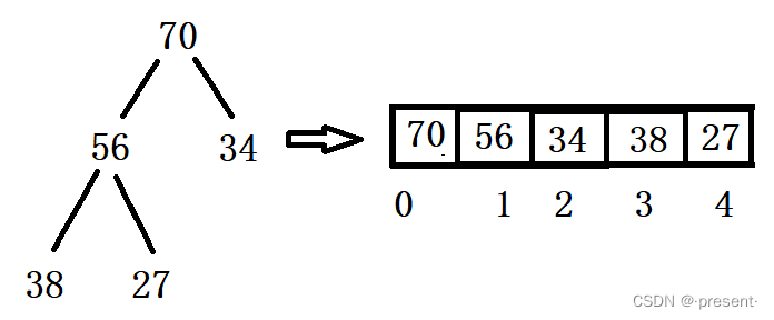 左边是我们所想的逻辑结构,而右边是在内存中实际存储的物理结构(数组).