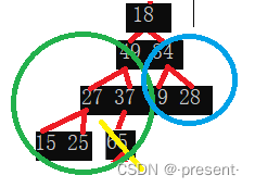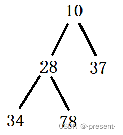 父亲(10)小于它的两个孩子(28,37),以此类推,父亲(28)小于它的两个孩子(34,78).