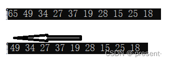 依旧拿上面的大堆举例,假设我们要取出65,一个简单的想法,就是将65后面的数字全部往前移