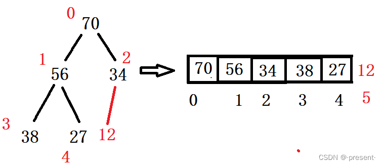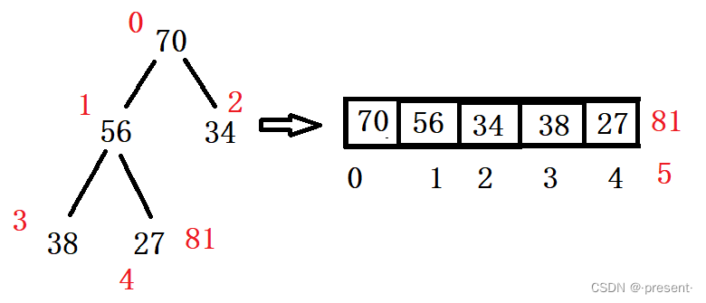 既然堆是一棵完全二叉树,而且以数组的形式存储,这也就意味着,它父亲和孩子之间的下标实