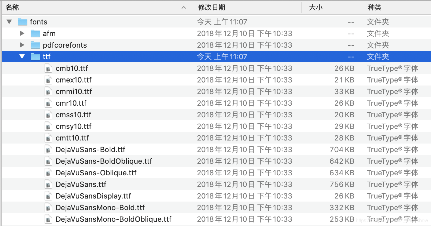3、将所下载的SimHei.ttf 文件放置在上边安装包文件的 ttf 目录中