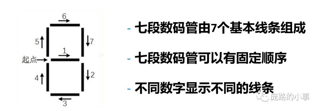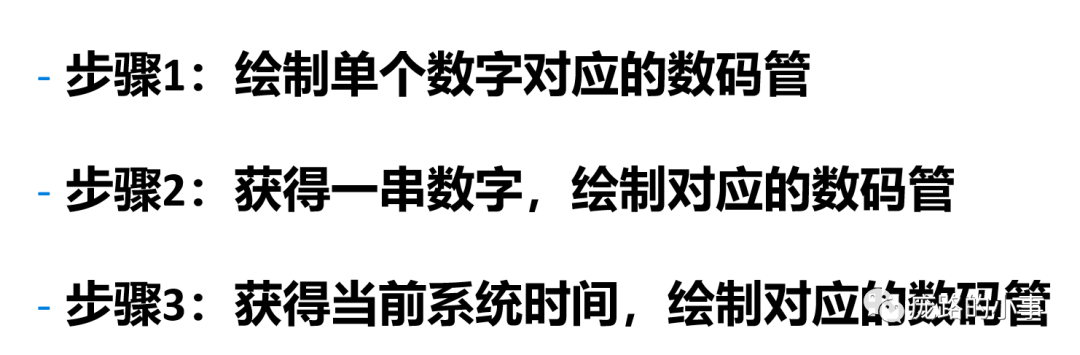 思路如上所示,我们将绘制单个数字转换成为【七段数码管】的显示问题