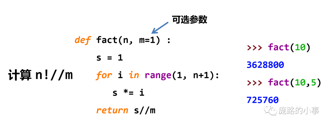 在可选参数中,可选的参数在调用时可加可不加,不加的时候会有一个默认的值。
