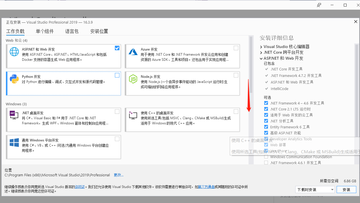 2、根据开发需要,勾选自己需要的组件,向下滑,有好多好多