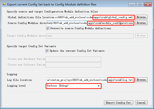点击Export Config Set,就可以将配置保存到工程中,以后编译下载即可载入当前保存的配置。